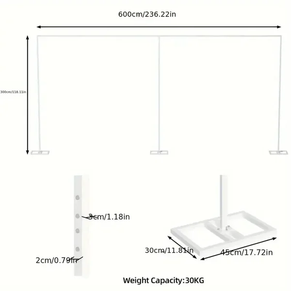 【Construction métallique】Le support de toile de fond de mariage est bien fait en fer métallique pour sa stabilité et sa qualité, le tube carré est plus durable et fiable que le tube rond, supporte facilement un poids allant jusqu'à 30 kg, ne rouille pas et ne se casse pas facilement, réutilisable et facile à démonter pour le stockage. 【Installation de bricolage réglable】Le paquet comprend toutes les vis et instructions nécessaires, très facile à assembler. Installation de bricolage, vous pouvez choisir de l'assembler à 3*6m, 3*4m, 3*2m, 2*6m, 2*2m